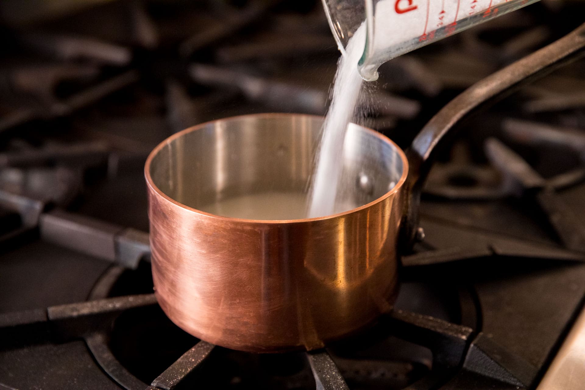 Combine the sugar and water in a saucepan and bring to a gentle boil, to make a simple syrup.