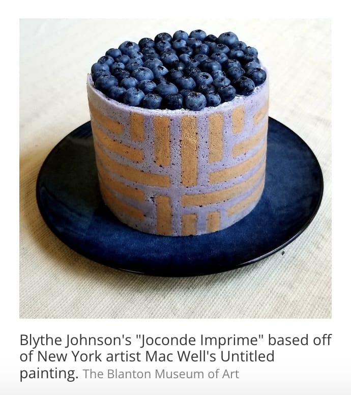 Blythe Johnson, the winner of the amateur category, re-created Mac Wells’ Untitled piece (see images below). Her cake had layers of blueberry almond sponge, lemon curd and whipped cream, according to Smithsonian Magazine. She made the joconde many times to find the perfect colors to match the artwork — stopping and starting over a two-week period — to complete the cake.