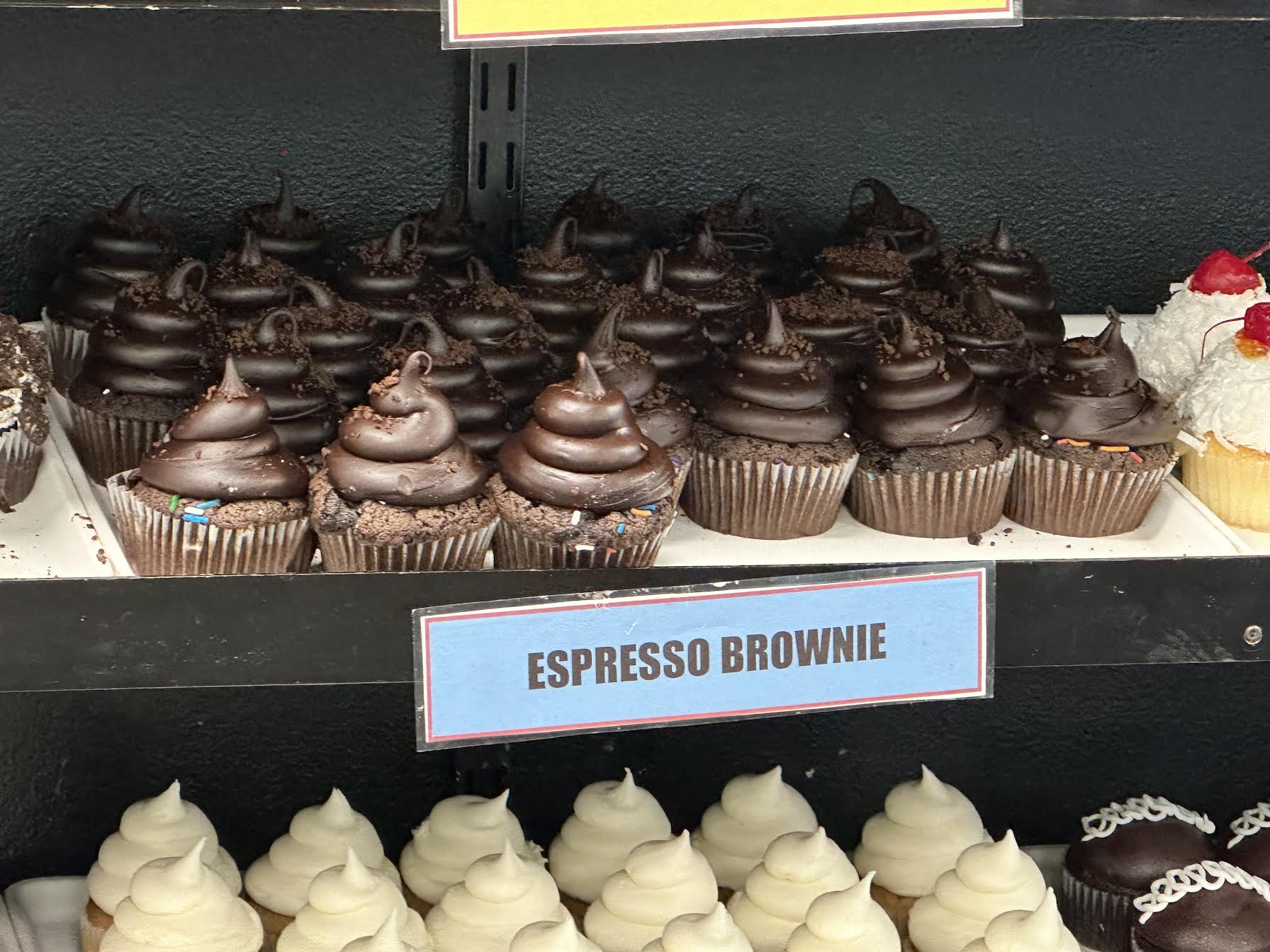 Of course we had to go in, and immediately asked for the most-ordered items. There was quite a list, including the strawberry shortcake, the peanut butter cup and, of course, the espresso brownie cupcake, declared the winner on Cupcake Wars.