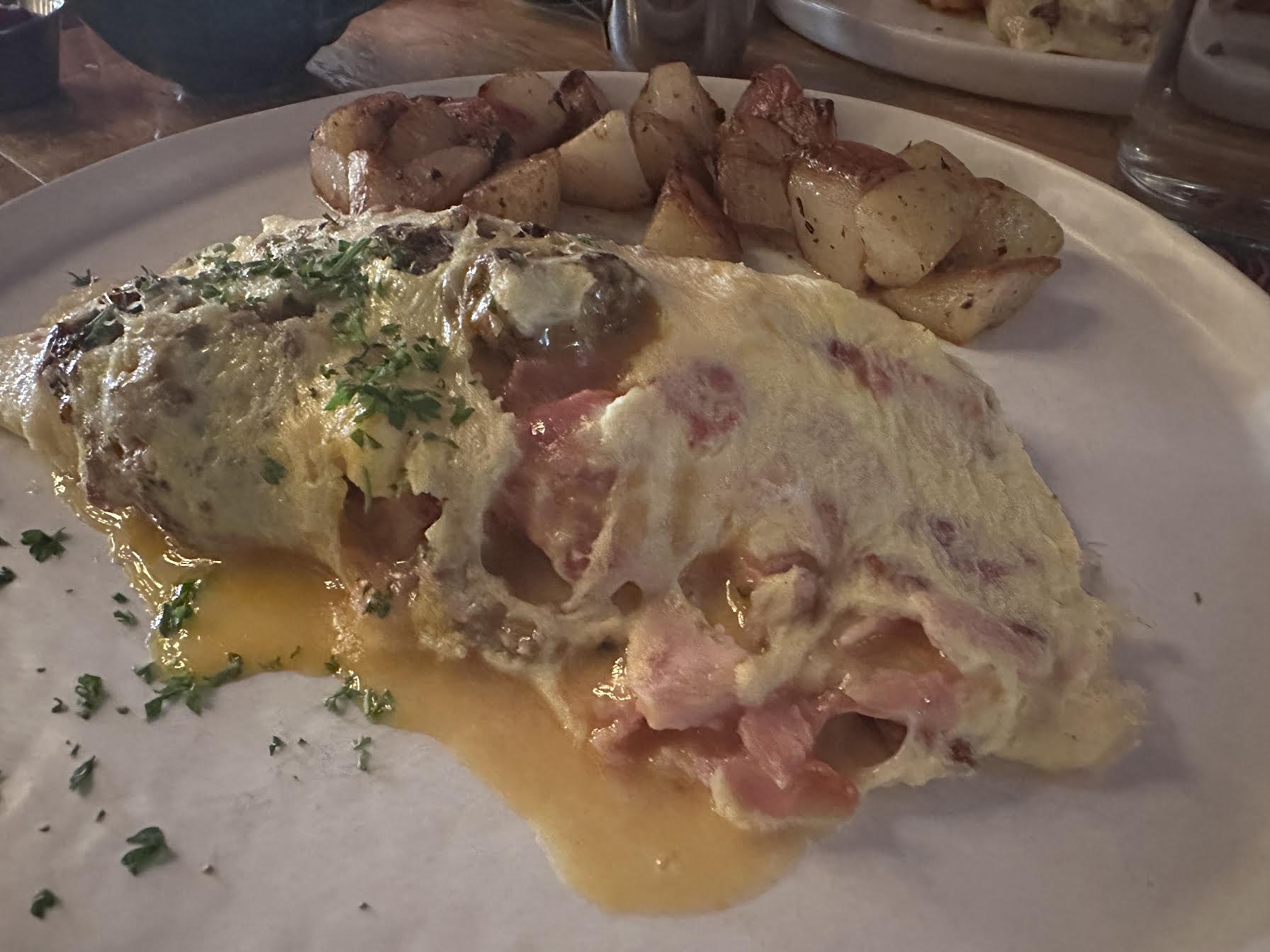 Prefer an omelet? Choose a Piggyback, with bacon, ham, sausage and two kinds of cheese. Or go a different direction with the Me Love Greens, full of mushrooms, squash, spinach and avocado.