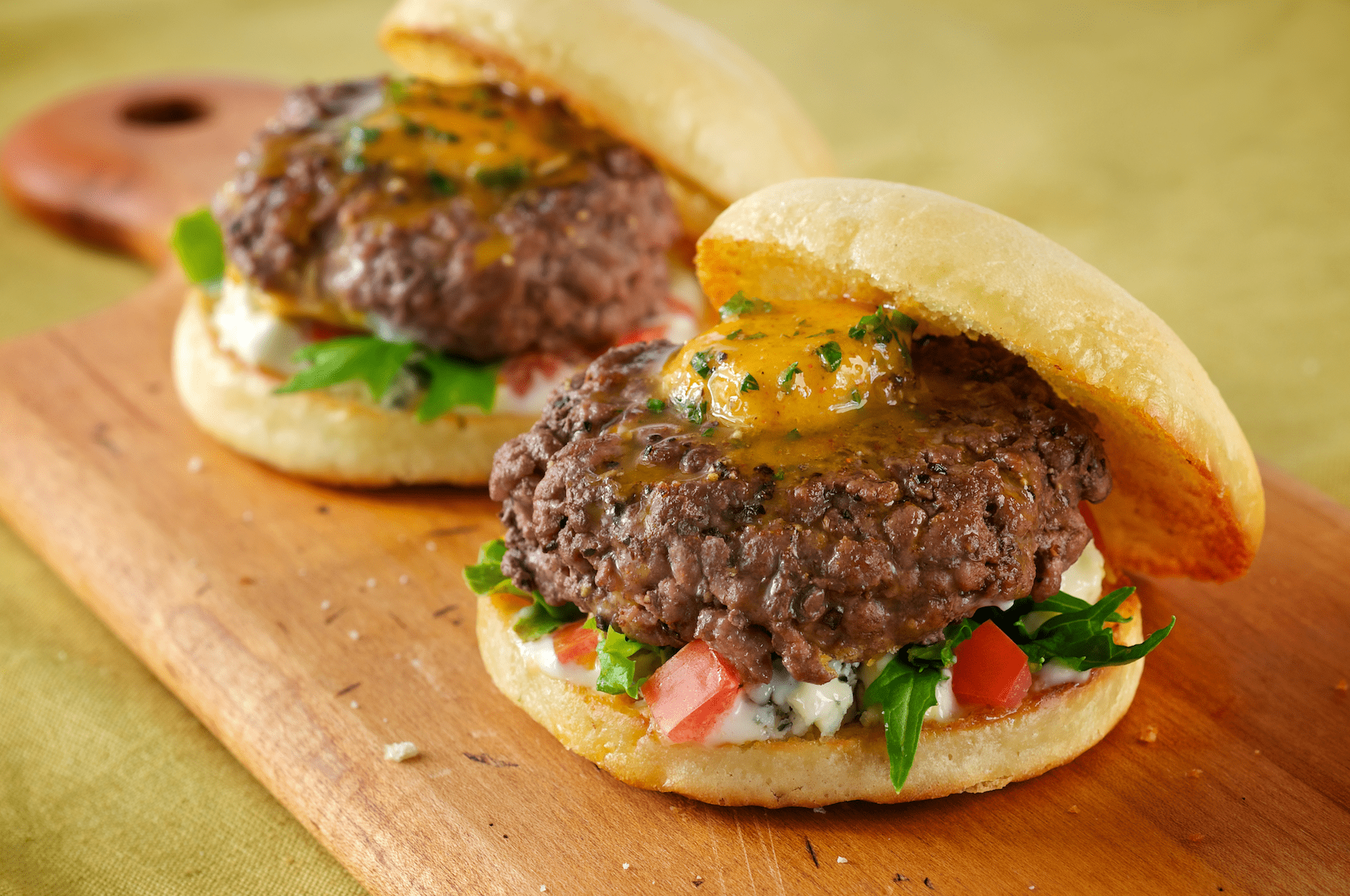 read more >: Creole SlidersPan-grilled mini burgers topped with bold, zesty-rich Creole butter. Serve layered on slider rolls topped with baby field greens, chunky bleu cheese dressing, and fresh chopped tomatoes.