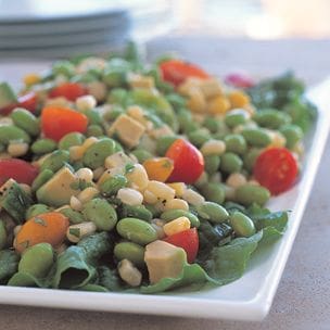 read more >: Edamame, Corn and Tomato SaladEdamame is the Japanese word for soybean. Edamame makes a delicious and healthy snack; the pods are lightly boiled in water, then salted, and the seeds are squeezed directly from the pods.