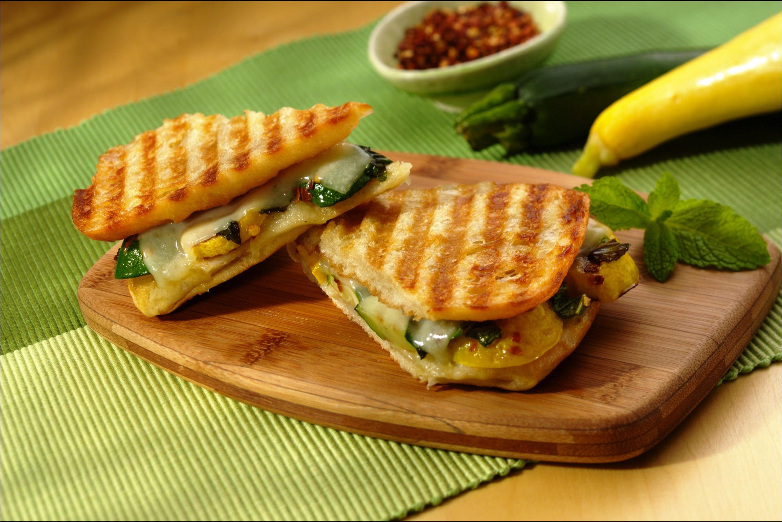 Baby Swiss Panini with Summer Squash Fresh Mint and Chile
